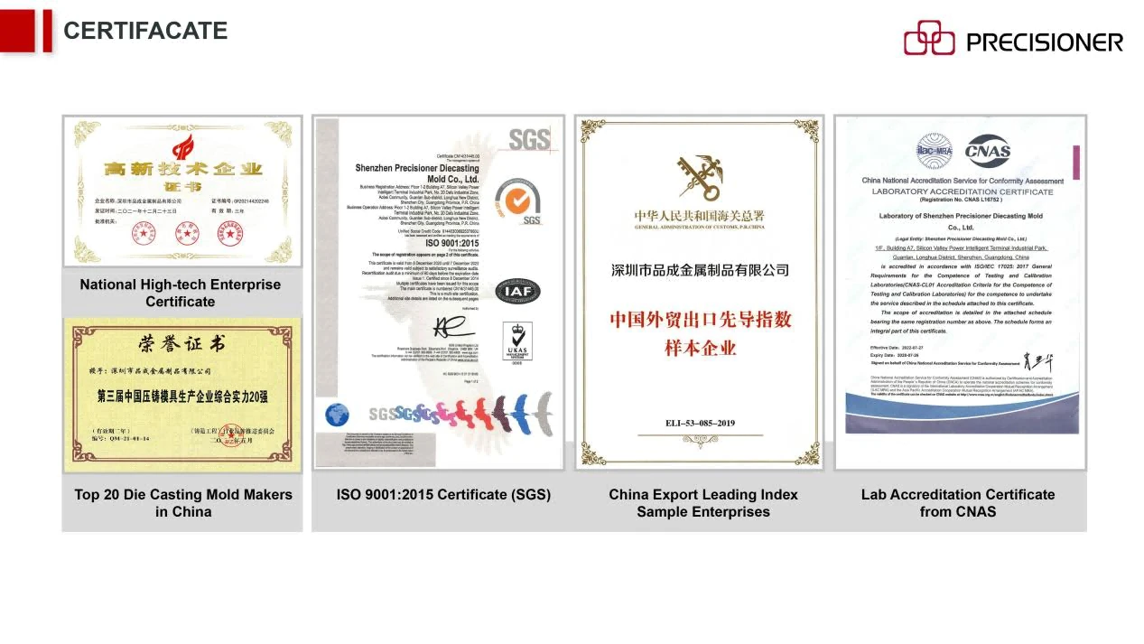 Desde 2009, Shenzhen Precisioner Diecasting Mold Co., Ltd. se ha destacado en moldes de inyección a presión para aleaciones de aluminio, zinc y magnesio. En nuestro 15° aniversario, anunciamos con orgullo una expansión de 20.000 m², que potencia nuestra productividad y capacidades técnicas.